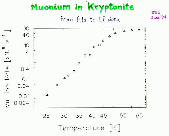 Muonium Hop Rate in s-Kr vs. T [ISIS 94]