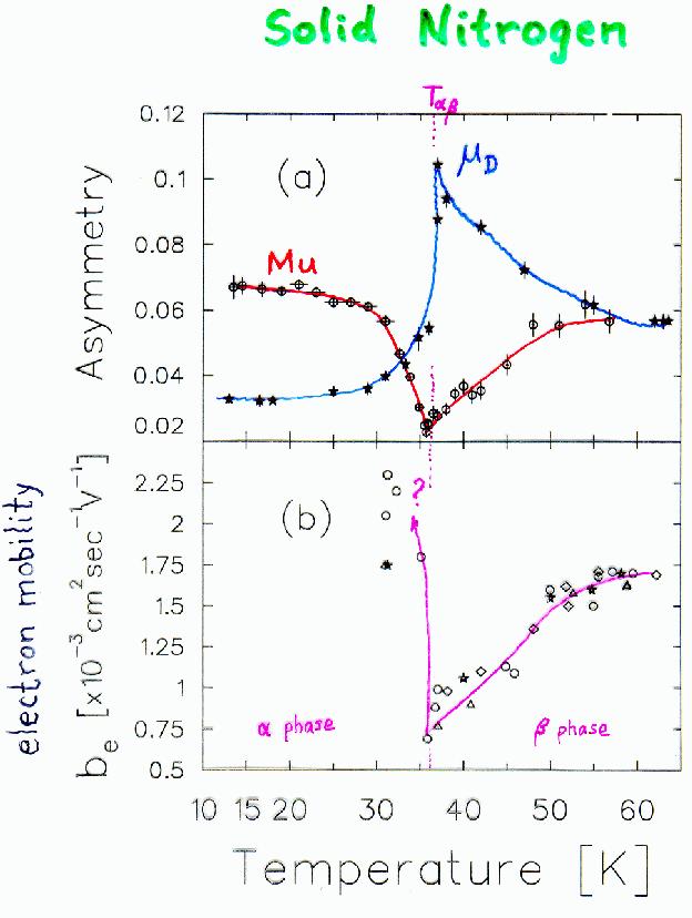 T-dep of Mu and Dia Asymm in s-N2 vs. Electron Mobility