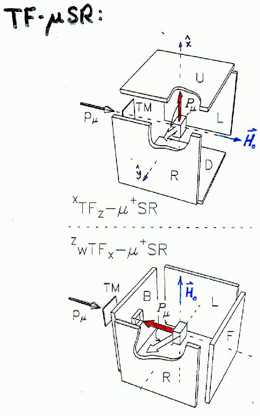 Sketch of xTFz-µSR and zwTFx-µSR Geometries